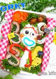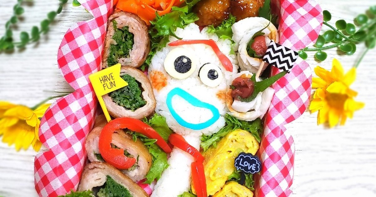トイ ストーリー4から フォーキー弁当 フォーキー スライスチーズ 海苔 カニカマ デコふりの青を混ぜたご飯. サニママのお弁当製作記 144 サニポケの簡単カワイイお弁当作り いよいよ夏休みも終わり 久しぶりのお弁当を作りました 久しぶりのお弁当.